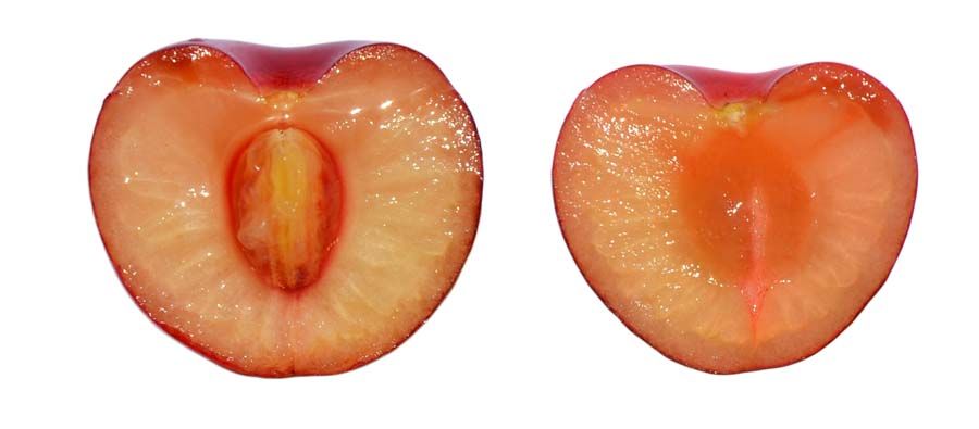 La cireres blanques ténen una fermesa molt consistent, mida gran, reniforme, amb l’epidermis vermella, la polpa de color crema i el peduncle de mida mitjana. És una varietat de floració tardana i maduració mitjana. A nivell genètic, destaca la seva diferenciació respecte a la resta de cirerers, excepte de la blanca de Montuïri. Això, ens fa pensar que té un origen diferent a la resta.