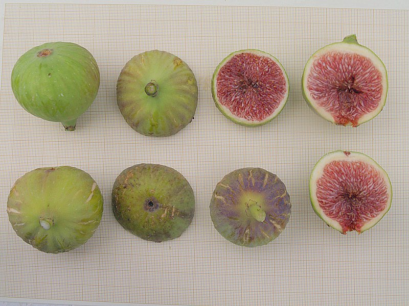 Les figues tenen forma abaldufada però asimètrica, amb el coll un poc tort al final de la maduració. Són de color canyella clar i verdós, amb un clivellat gruixat, així com l’epidermis i la polpa és roja, molt saborosa.